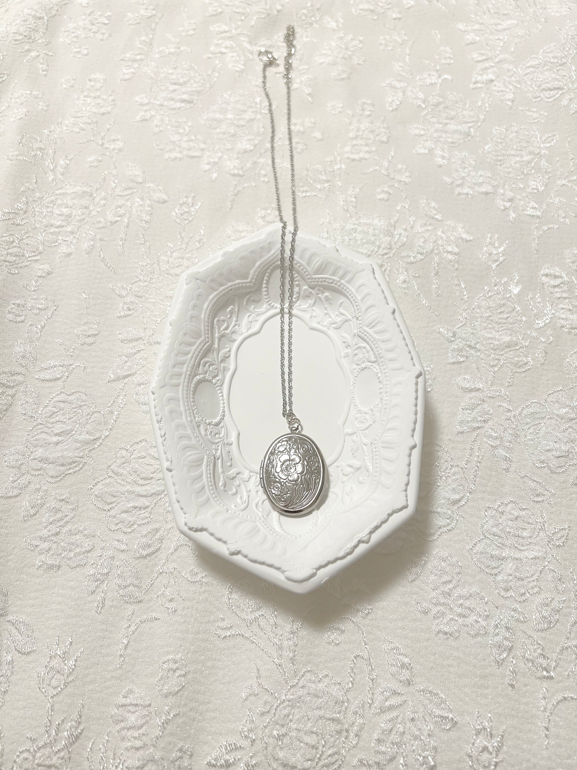 Flower Engraved Oval Locket