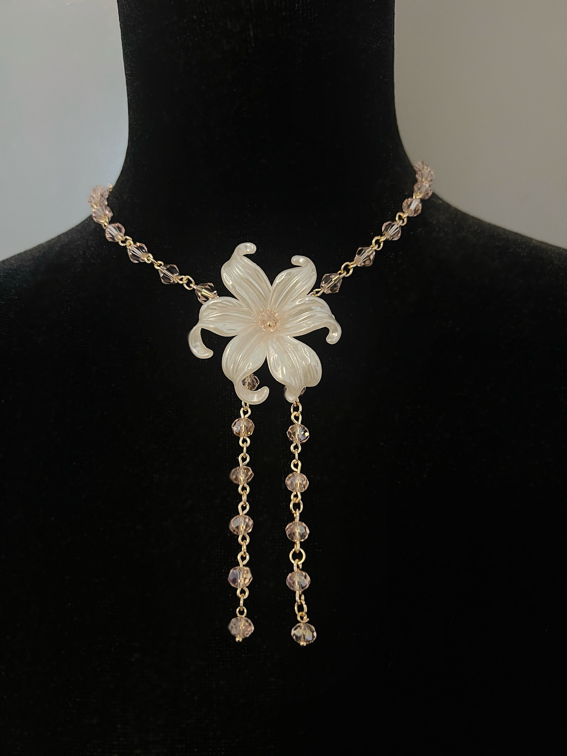 Pink Bead Iris Necklace